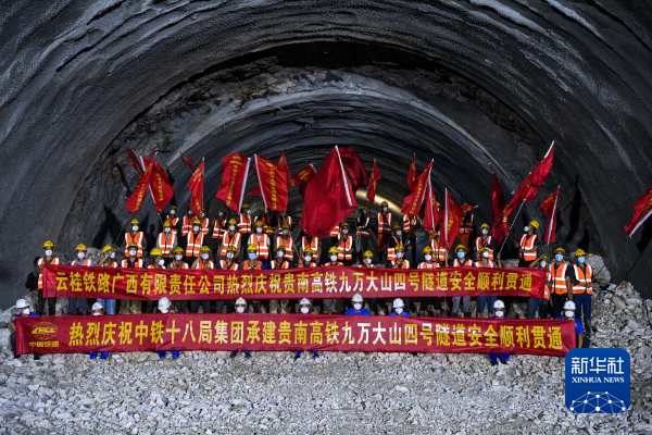 这是2022年8月17日拍摄的贵南高铁九万大山四号隧道贯通现场。