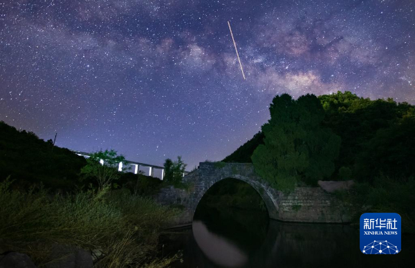 2021年6月6日拍摄的星空下的银坡河特大桥和蒙家桥。