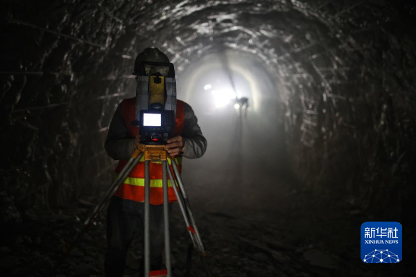 2021年12月5日,工作人员在九万大山一号隧道平行导洞内调试设备。
