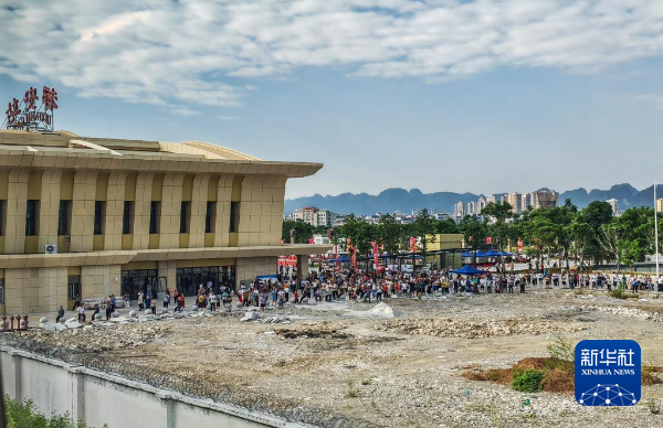 8月31日,当首趟贵南高铁列车开进广西都安站时,车站旁早已挤满了等候的群众(手机拍摄)。
