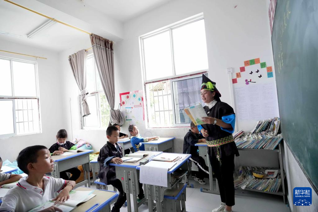 柳吉小学教师王章艳在给学生上课(9月7日摄)。新华社发(王炳真 摄)pagebreak