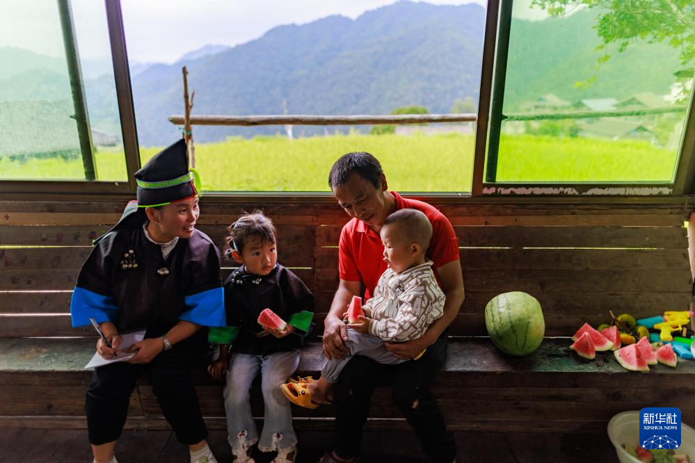 柳吉小学教师王章艳(左一)在学生龙运凡(左二)家中家访(9月7日摄)。新华社记者 刘续 摄pagebreak