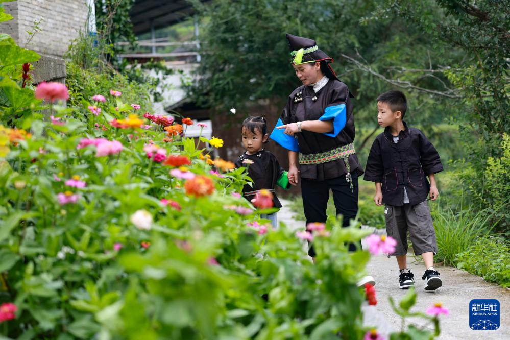 柳吉小学教师王章艳(中)在去往学生龙运平(右)和龙运凡家中家访的路上(9月7日摄)。新华社记者 刘续 摄pagebreak