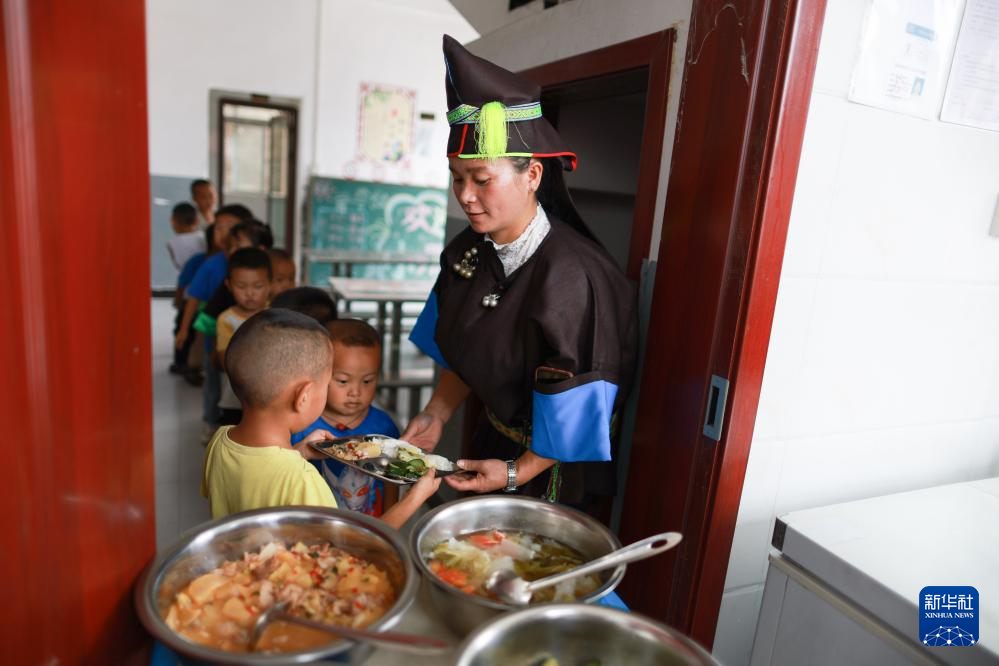 柳吉小学教师王章艳在食堂给学生打饭(9月7日摄)。新华社记者 刘续 摄pagebreak