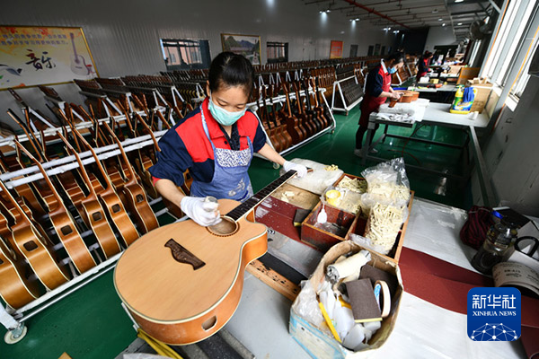 随着吉他产业蓬勃发展,“音乐生产力”正不断惠及正安县百姓。据统计,吉他产业带动当地1.5万余人就业,保障近7000人稳定脱贫。2020年3月,这个曾经的深度贫困县,实现了当年标准下农村贫困人口全部脱贫。