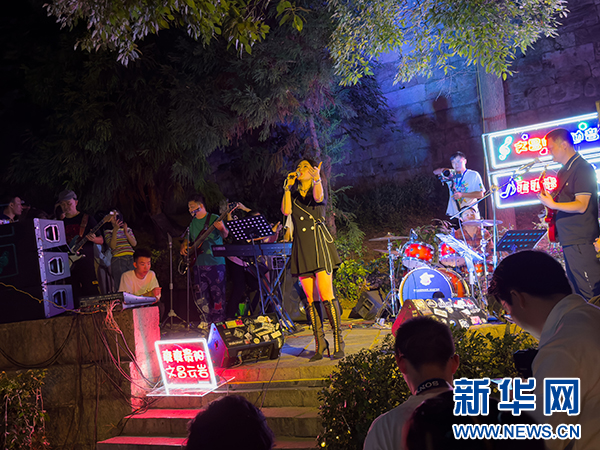 当晚18:30,在贵阳市地标建筑文昌阁的古城墙下,5支本土乐队轮番登台献唱。《有多少爱可以重来》《鬼迷心窍》《人世间》等一首首经典歌曲响起,台上的歌手纵情歌唱,台下的观众热情喝彩,热情、昂扬的氛围,瞬间点燃了老城的夜晚。