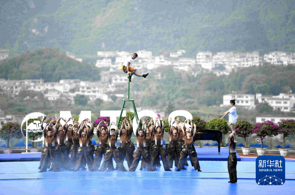 9月16日,演员在2023国际山地旅游暨户外运动大会开幕式上表演。新华社发(刘朝富 摄)
