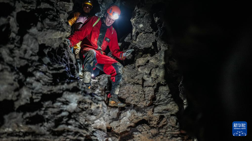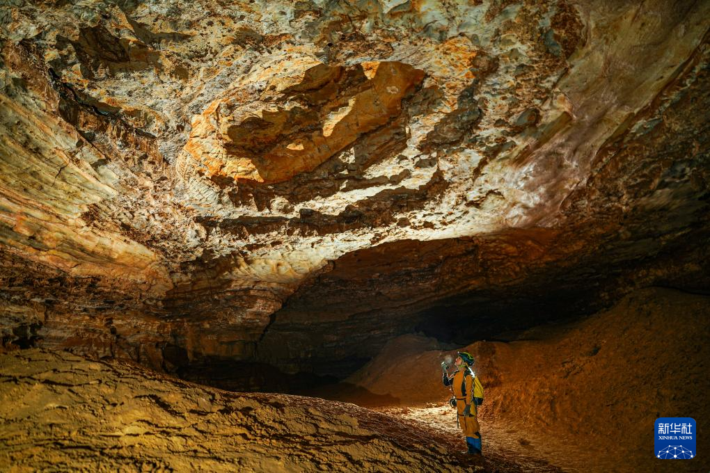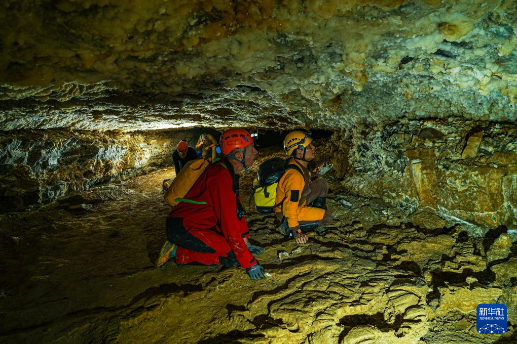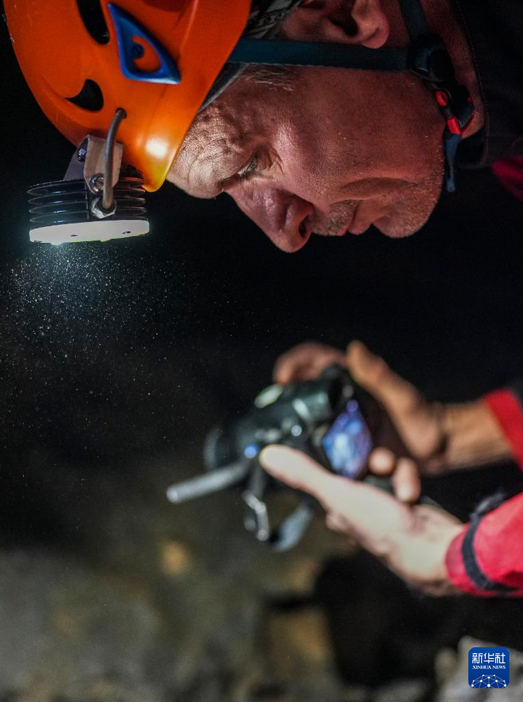 意大利专家在双河洞一处支洞中进行科考(9月24日摄)。新华社记者 陶亮 摄