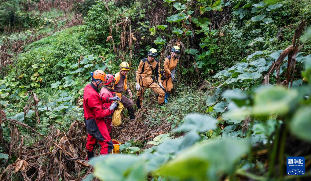 意大利专家和贵州省山地资源研究所科考队员在前往探洞的途中(9月24日摄)。新华社记者 陶亮 摄