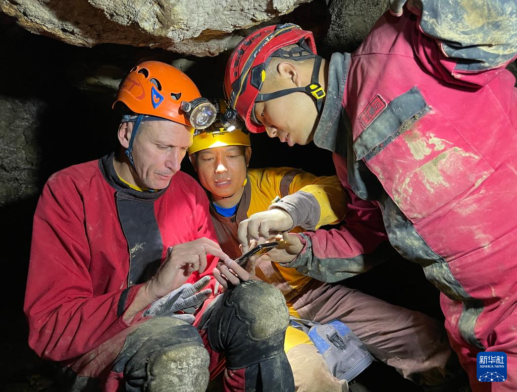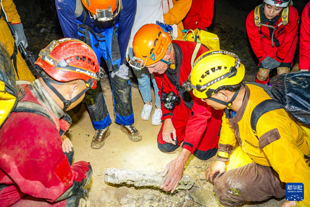 中外科考人员在贵州省双河洞内开展科考(9月24日摄)。新华社记者 骆飞 摄