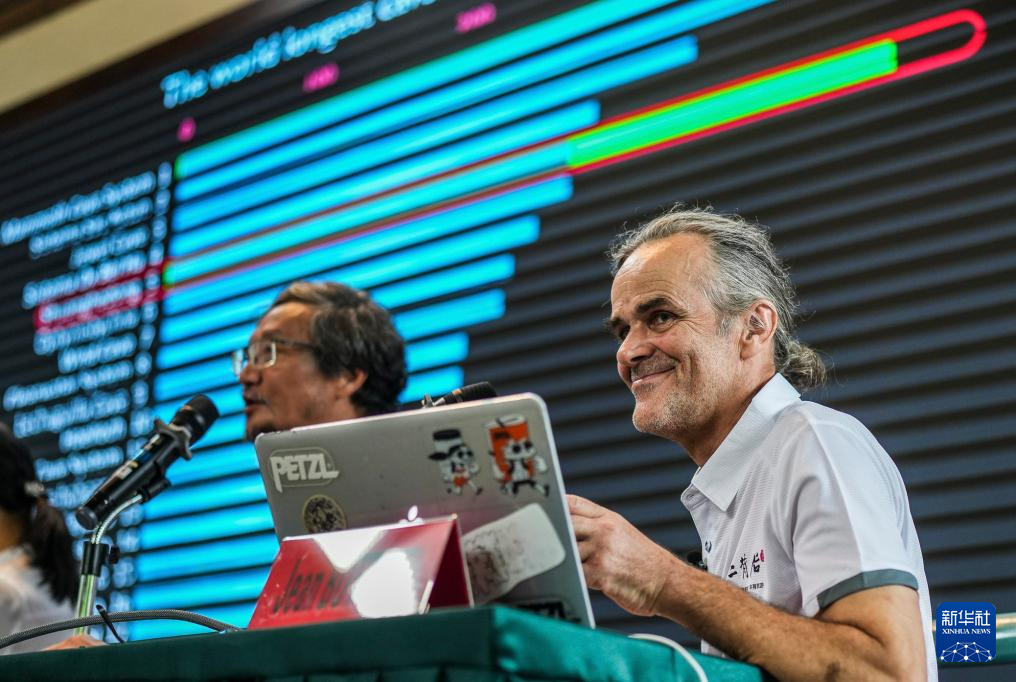 法国洞穴联盟成员、国际洞穴探险家让·波塔西在新闻发布会上(9月26日摄)。