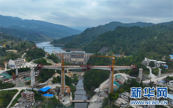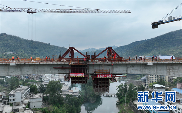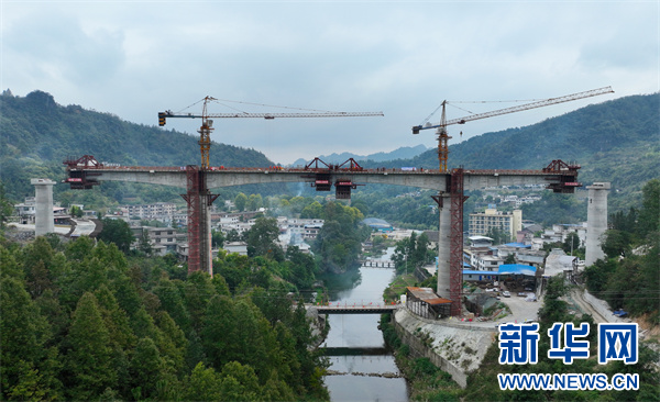 10月10日,瓮马铁路南北延伸线项目谷江河大桥顺利合龙。新华网 卢志佳 摄