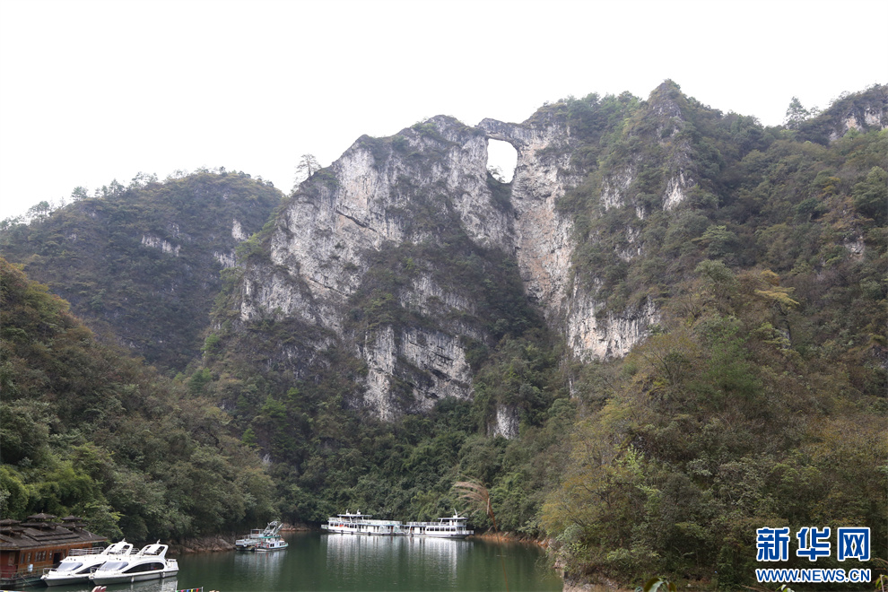 图为10月19日拍摄的㵲阳河景区标志性景点“孔雀开屏”。新华网 周远钢 摄pagebreak