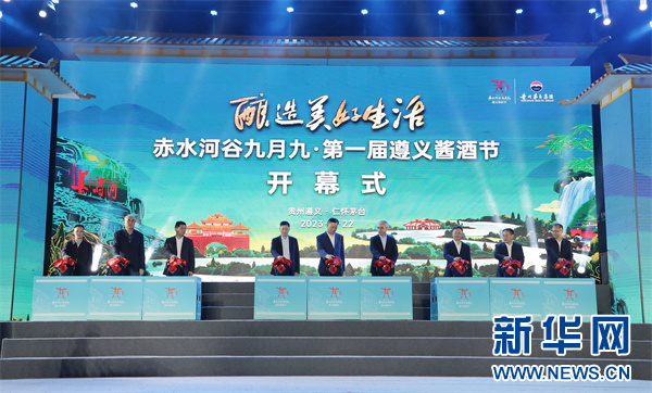 10月22日,赤水河谷九月九·第一届遵义酱酒节在茅台镇开幕。新华网 卢志佳 摄