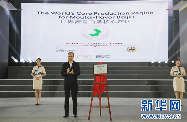 10月22日,酱酒节开幕式为仁怀市举行了“世界酱香白酒核心产区”揭牌仪式。新华网 卢志佳 摄