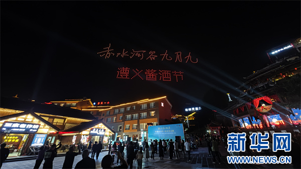 10月22日,赤水河谷九月九·第一届遵义酱酒节开幕式上的无人机表演。新华网 卢志佳 摄