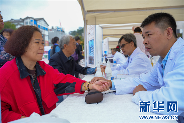 新华网贵阳10月23日电 “老人家,你的手很冰啊,要注意保暖”“医生,我最近容易疲劳,帮我看看”……10月22日是世界传统医药日。当日,由贵州省中医药管理局主办的贵州省2023年中医药文化主题宣传活动在遵义市举行。