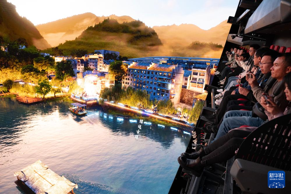 10月23日,观众在“红飘带”数字体验馆内体验“飞行影院”。新华社记者 胡智轩 摄pagebreak