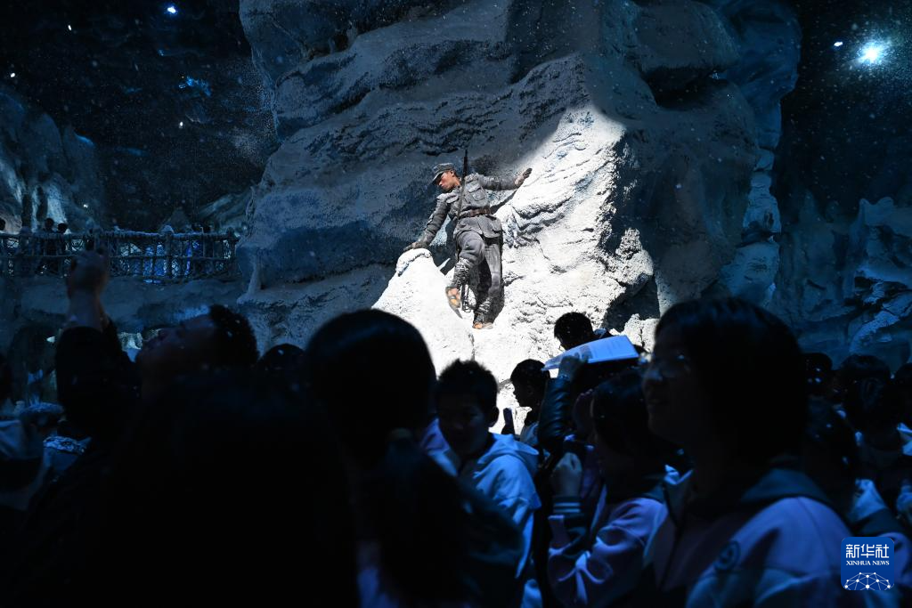 10月23日,观众在“红飘带”数字体验馆内观看体验长征故事。新华社记者 胡智轩 摄pagebreak