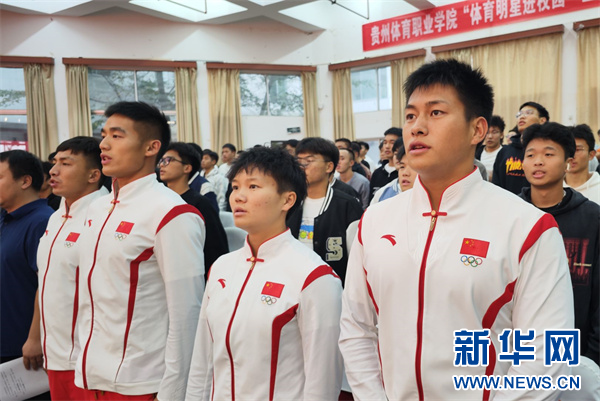 活动以升国旗、奏唱国歌拉开序幕,贵州体育职业学院400余名师生与体育明星们一起唱响国歌。随后,杨海雷、帅常文、林莉、张宇轩以演讲的方式介绍了他们的运动生涯、比赛经历和训练心得。