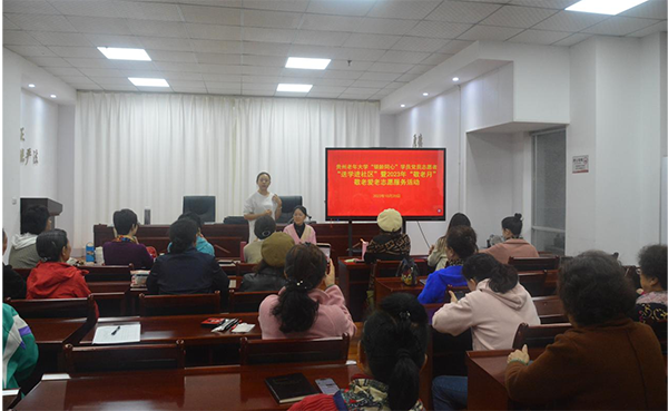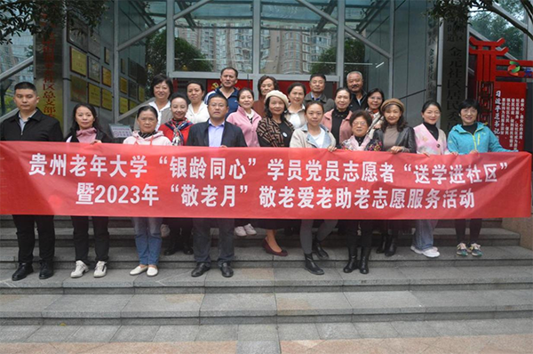 为认真贯彻落实新时代党的建设总要求和积极应对人口老龄化国家战略,弘扬中华民族孝老爱亲传统美德,积极营造敬老爱老助老良好社会氛围,10月20日,在我国第十一个“老年节”(重阳节)前夕,贵州老年大学“银龄同心”学员党员志愿者到贵阳市观山湖区金阳街道金元社区开展“送学进社区”暨2023年“敬老月”敬老爱老助老志愿服务活动。
