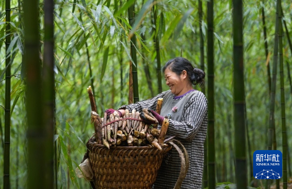 贵州省赤水市宝源乡联华村竹农采收竹笋。新华社记者 杨文斌 摄