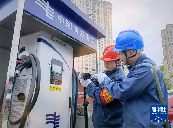 南方电网贵州电网公司工作人员为充电桩“体检”。(向世杰 摄)