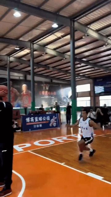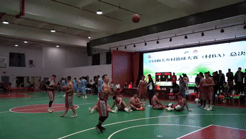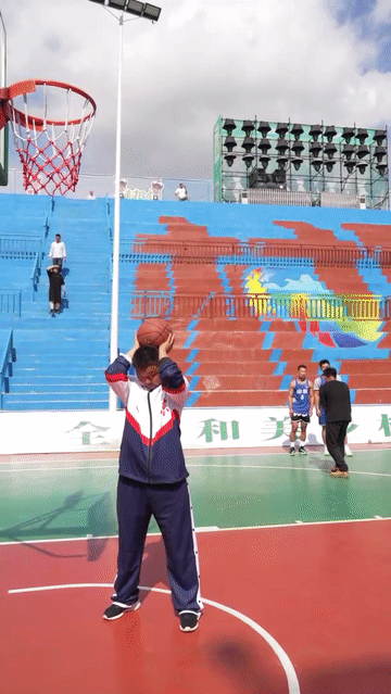 申守法在贵州省台江县台盘村“村BA”球场扣篮