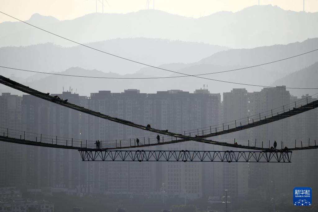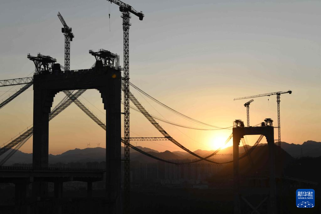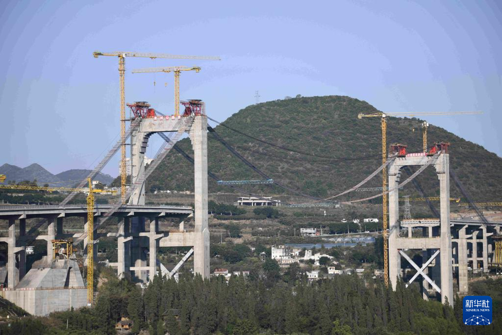 11月11日拍摄的建设中的金州大桥。新华社发(刘朝富 摄)