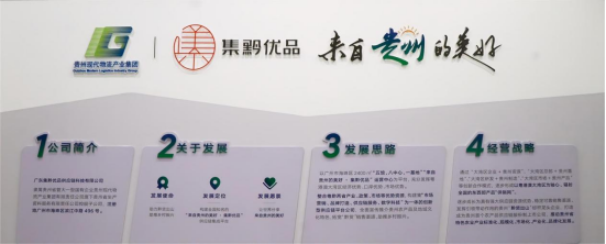 广集公司积极响应国发〔2022〕2号文件支持贵州积极对接融入粤港澳大湾区建设的具体要求,积极探索“大湾区总部+贵州基地”、“大湾区市场+贵州产品”等创新合作模式,正逐步成长为具有强大供应链资源优势、稳定可靠销售渠道、发挥引领带动作用的贵州“黔品出山”标杆企业,推动贵州省特色产业标准化、产业化、市场化、品牌化发展。