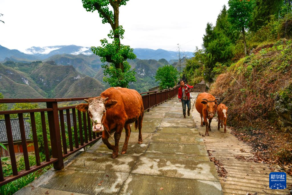 11月15日,贵州省石阡县国荣乡楼上古寨的村民放牛归来。新华社记者 杨文斌 摄pagebreak