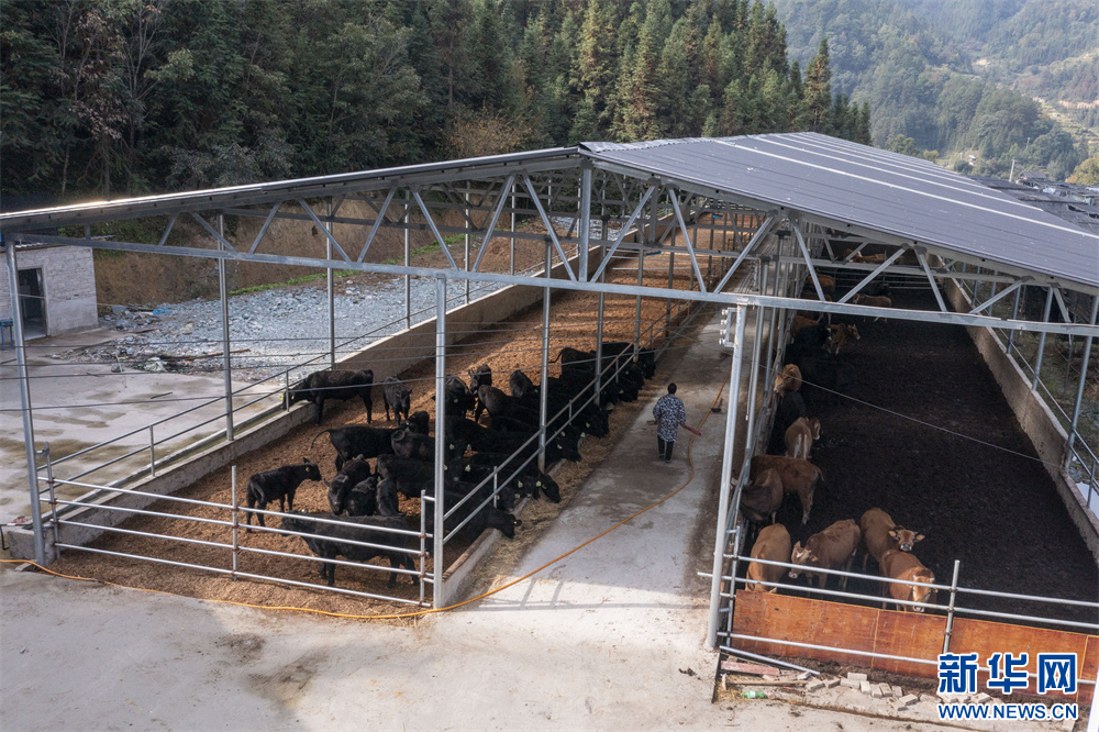 11月16日拍摄的贵州省从江县洛香镇伦洞村养牛场一角(无人机照片)。新华网发(吴德军 摄)