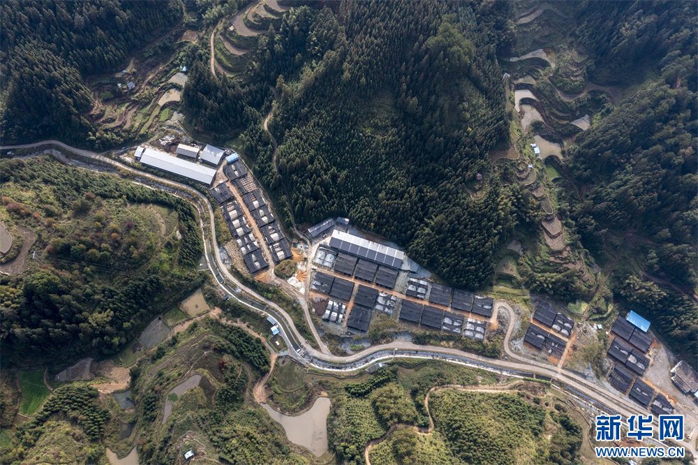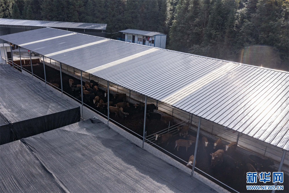 11月16日拍摄的贵州省从江县洛香镇伦洞村养牛场全景(无人机照片)。新华网发(吴德军 摄)pagebreak