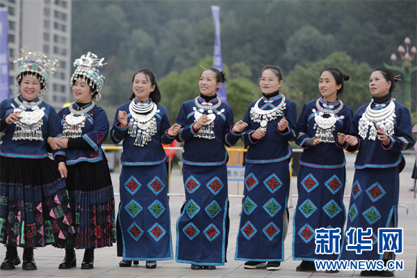 11月18日,开幕式现场身着少数民族服装的惠水当地群众。新华网 卢志佳 摄