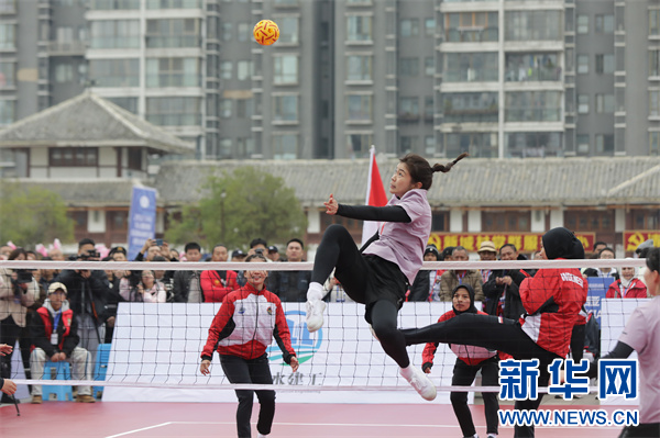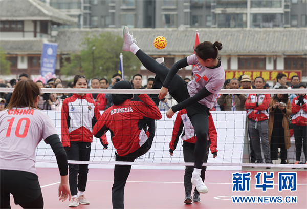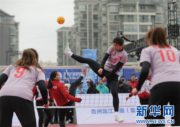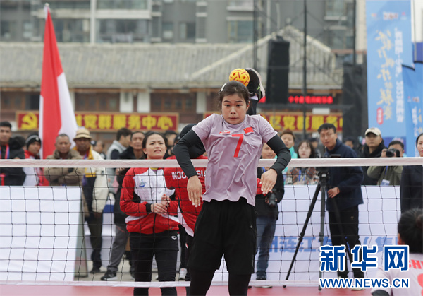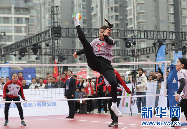 藤球运动起源于东南亚,与排球运动类似,不同的是以脚代替手,又叫“脚踢的排球”。比赛过程中,参赛选手需要运用脚腕、膝关节等夹球、顶球的方式击球过网,使球落到对方场地内或使对方球员接球出界,每支球队可上场2人至4人。比赛中运用到的倒挂金钩式扣球、半空齐肩踢球、腾空转体180°等高难度动作极具观赏性。