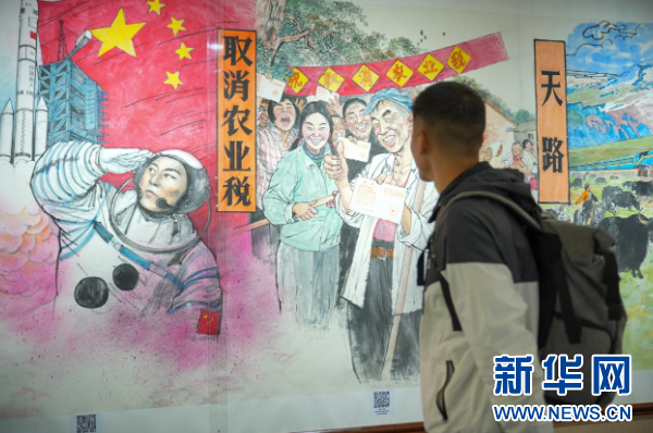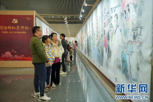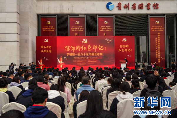 11月18日,书画长卷《信仰的红色印记》巡回展在贵州省图书馆展出。(新华网发 龙建睿摄)