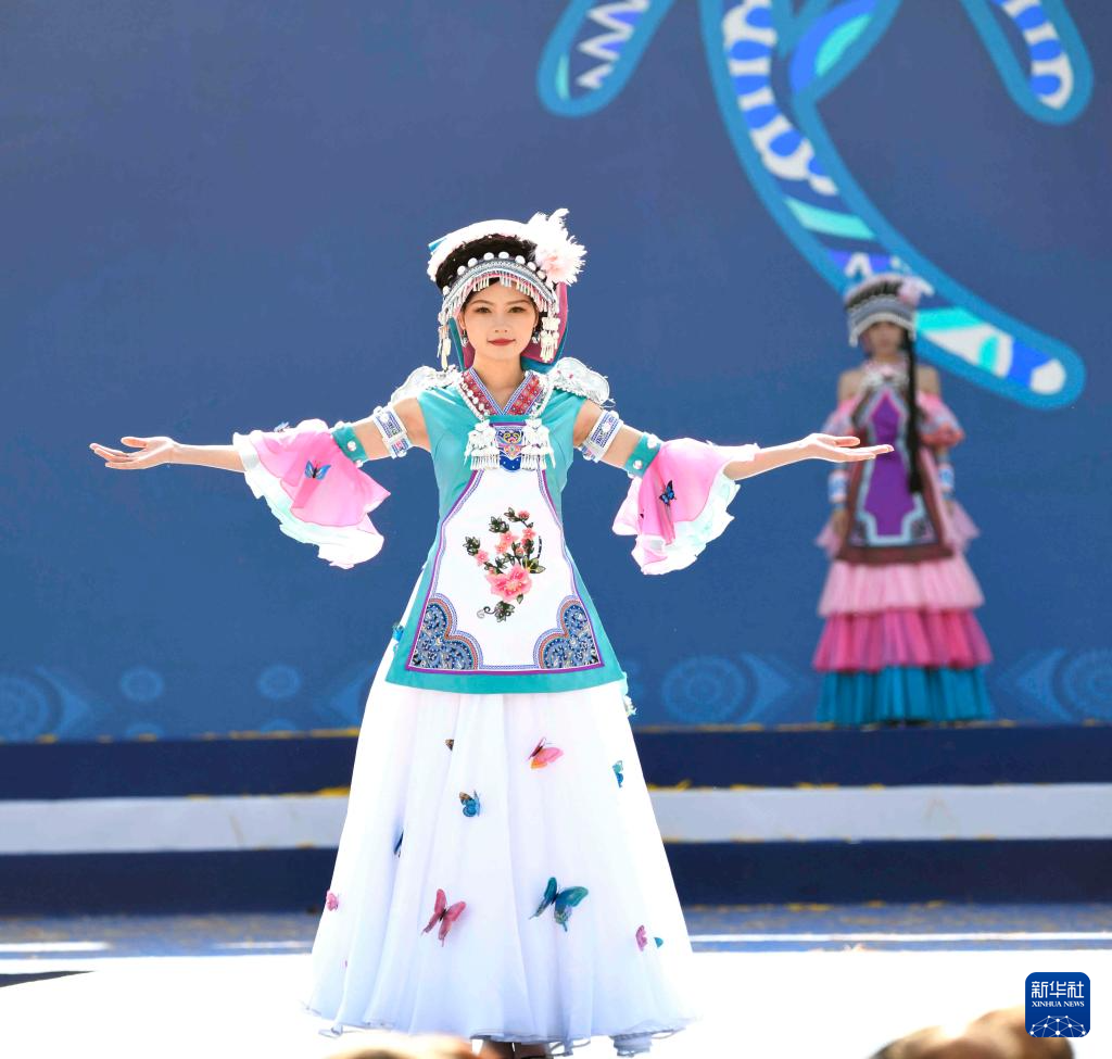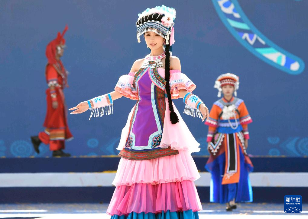 11月20日,模特在册亨县纳福广场展示带有布依族元素的服饰。新华社发(刘朝富 摄)pagebreak