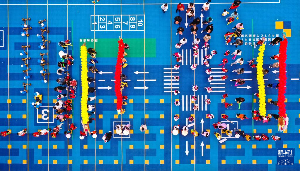 11月23日拍摄的玉屏侗族自治县第三幼儿园冬季亲子运动会(无人机照片)。新华社发(胡攀学 摄)pagebreak