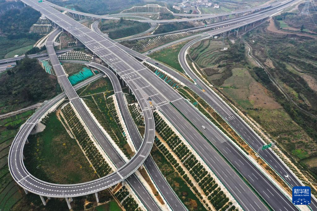 11月24日,车辆在贵金高速公路郝官枢纽上行驶(无人机照片)。新华社记者 杨文斌 摄