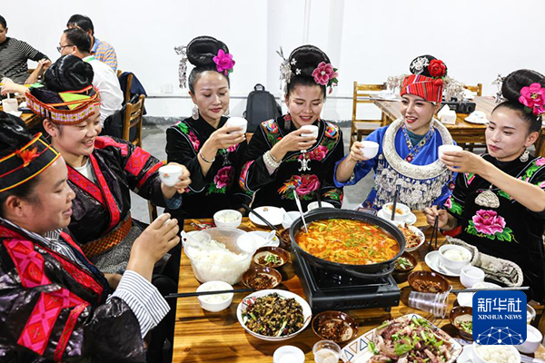 人们在台盘村“球迷食府”内用餐(2023年10月25日摄)。新华社记者 欧东衢 摄