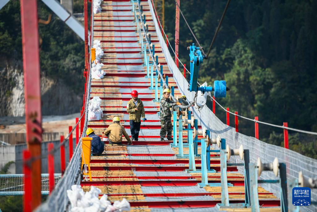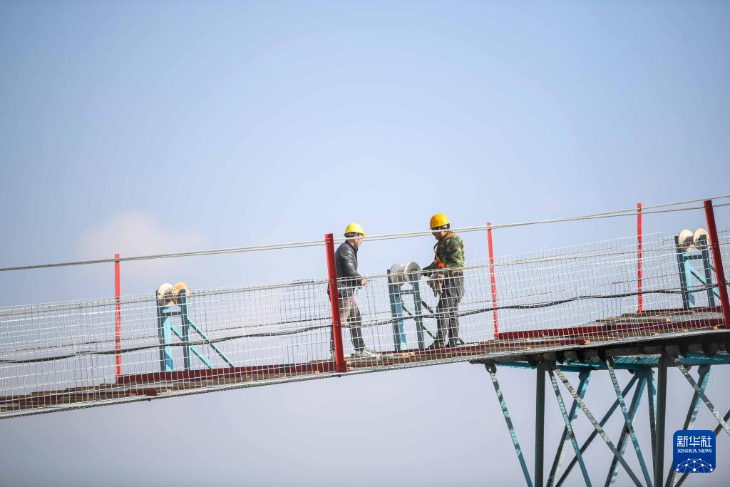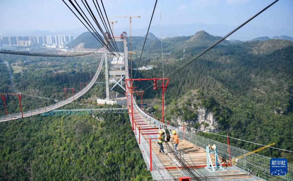 11月25日,工人在兴义市金州大桥建设工地施工。新华社发(刘朝富 摄)