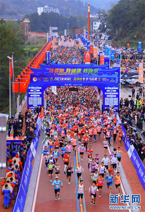 11月26日,2023贵州铜仁·梵净山冬季马拉松比赛现场。新华网发(龙建睿摄)