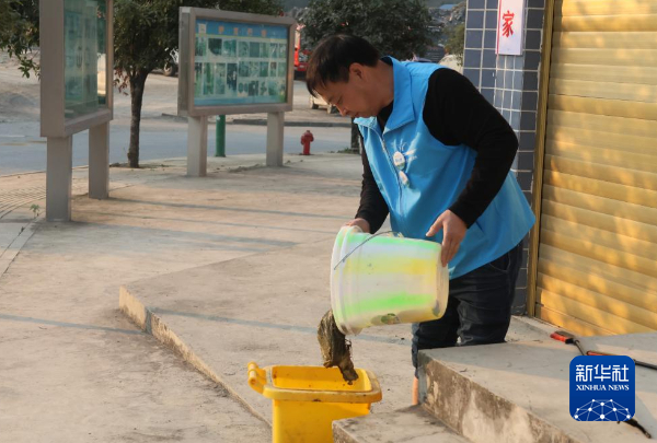 11月20日,郭小勇处理他在河边捡拾的垃圾。新华社记者周宣妮摄