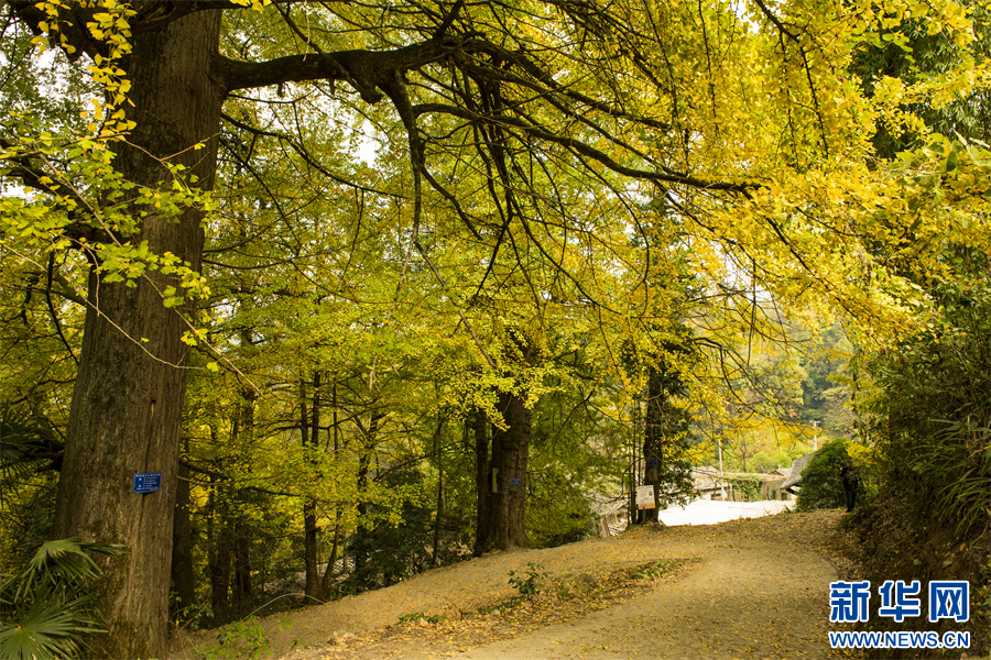 凤冈县进化镇沙坝村响水岩银杏。新华网发(冉昱晟 摄)