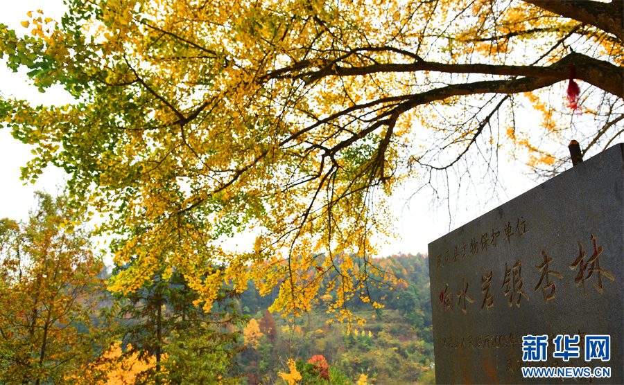 凤冈县进化镇沙坝村响水岩银杏。新华网发(马志军 摄)