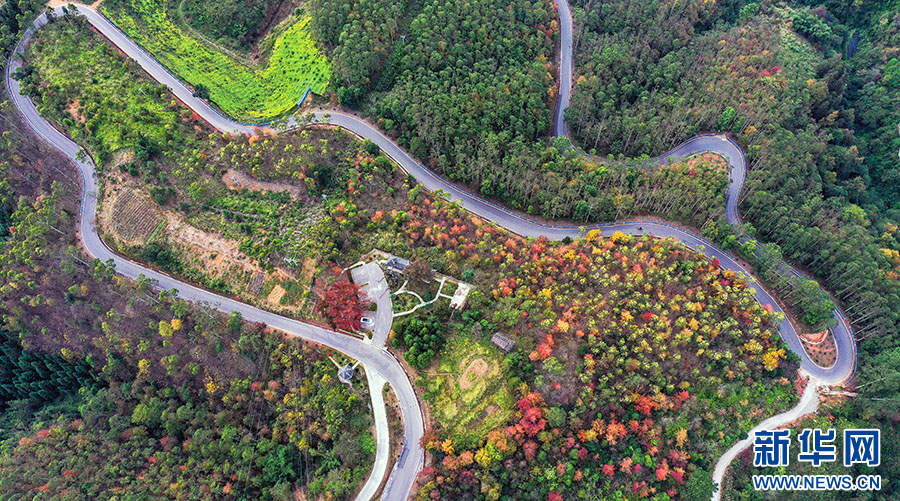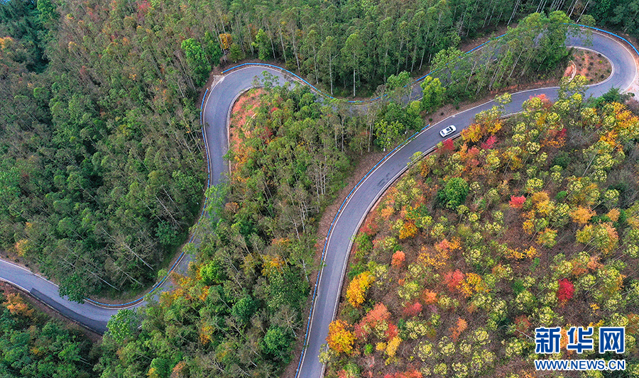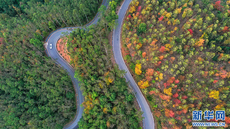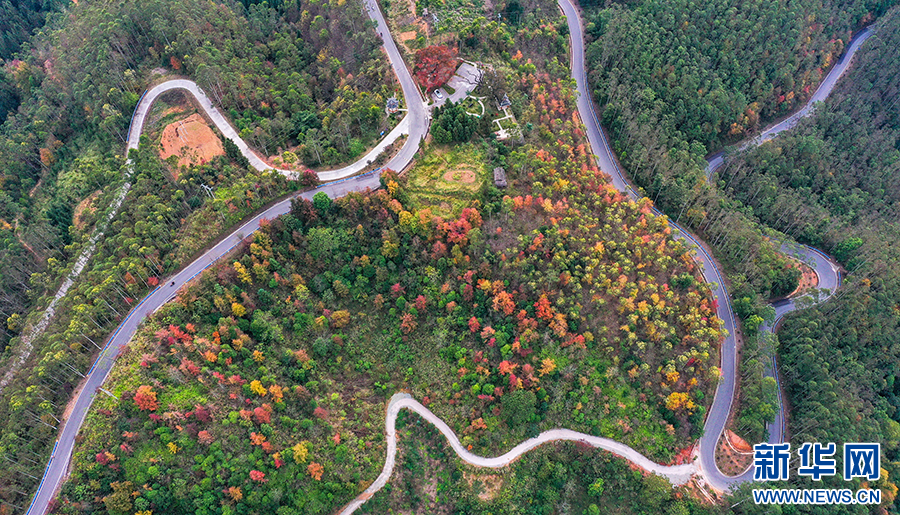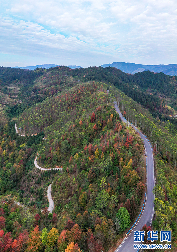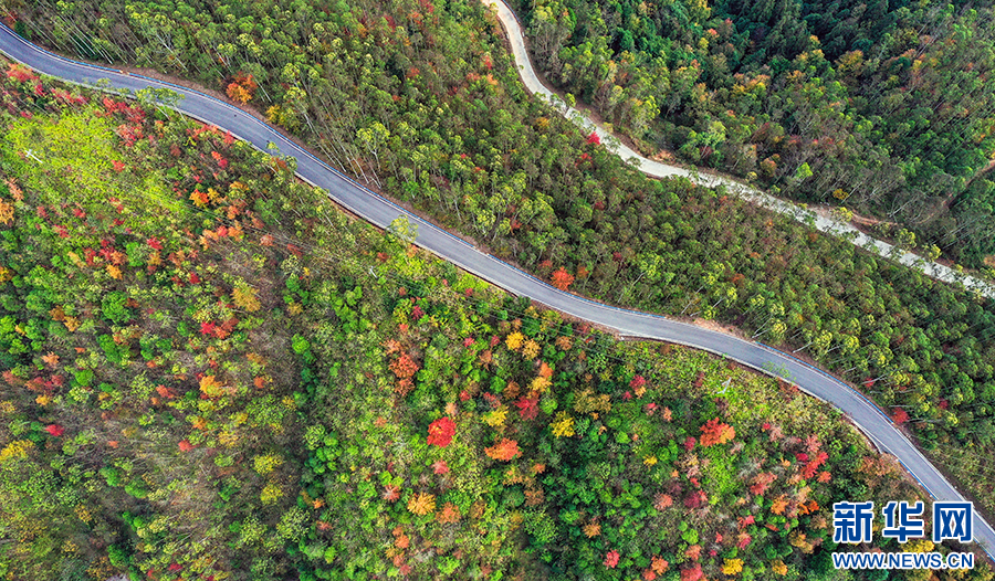 12月6日,贵州省从江县高增乡境内的农村公路两侧层林尽染,景色宜人。新华网发(罗京来 摄)