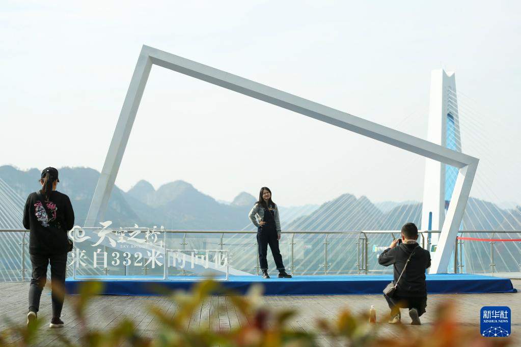 12月6日,游客在贵州省平塘县“天空之桥”观光服务区拍照。新华社发(肖伟摄)