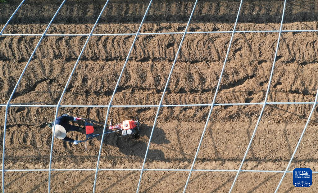 12月22日,在贵州省从江县刚边壮族乡平中村,村民在大棚内松土(无人机照片)。新华社发(罗京来 摄)pagebreak