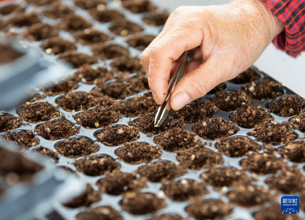 12月22日,农民在贵州省罗甸县沫阳镇蔬菜育苗基地内播种。