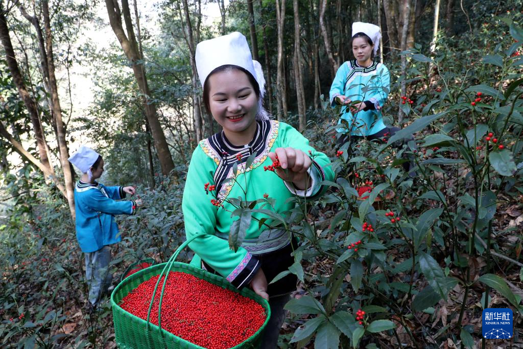 12月22日,在贵州省榕江县兴华水族乡星月村草珊瑚种植基地,农民在采收草珊瑚。新华社发(李长华 摄)